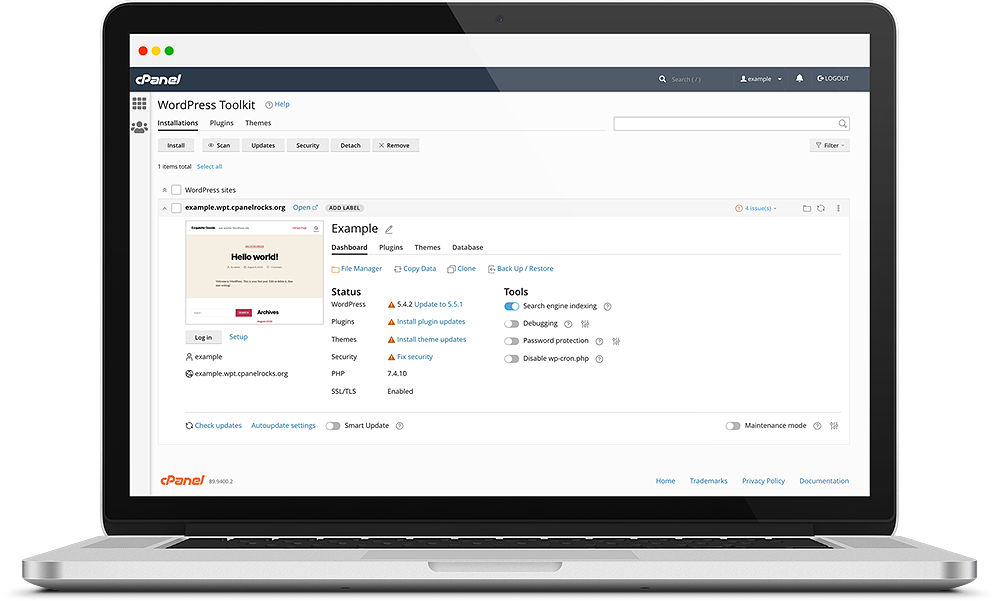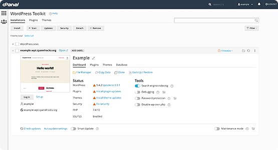 WP Toolkit er en administrationsgrænseflade til WordPress fra cPanel og Plesk, der giver dig mulighed for at installere, konfigurere og administrere WordPress-websteder.